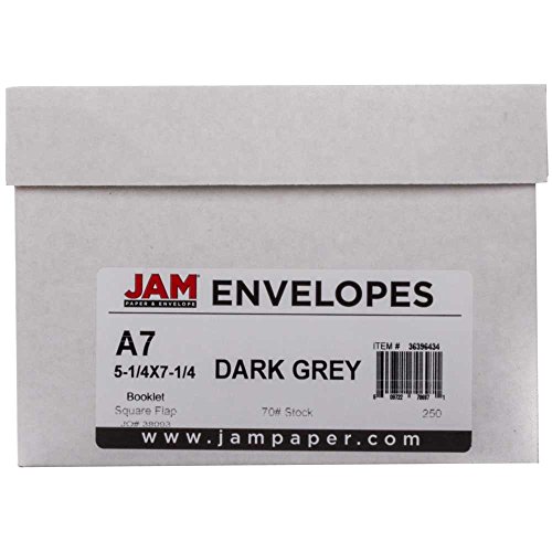 -. Title : JAM Paper A7 Invitation Envelopes - 5 1/4" x 7 1/4"- Dark Grey - 25/pack