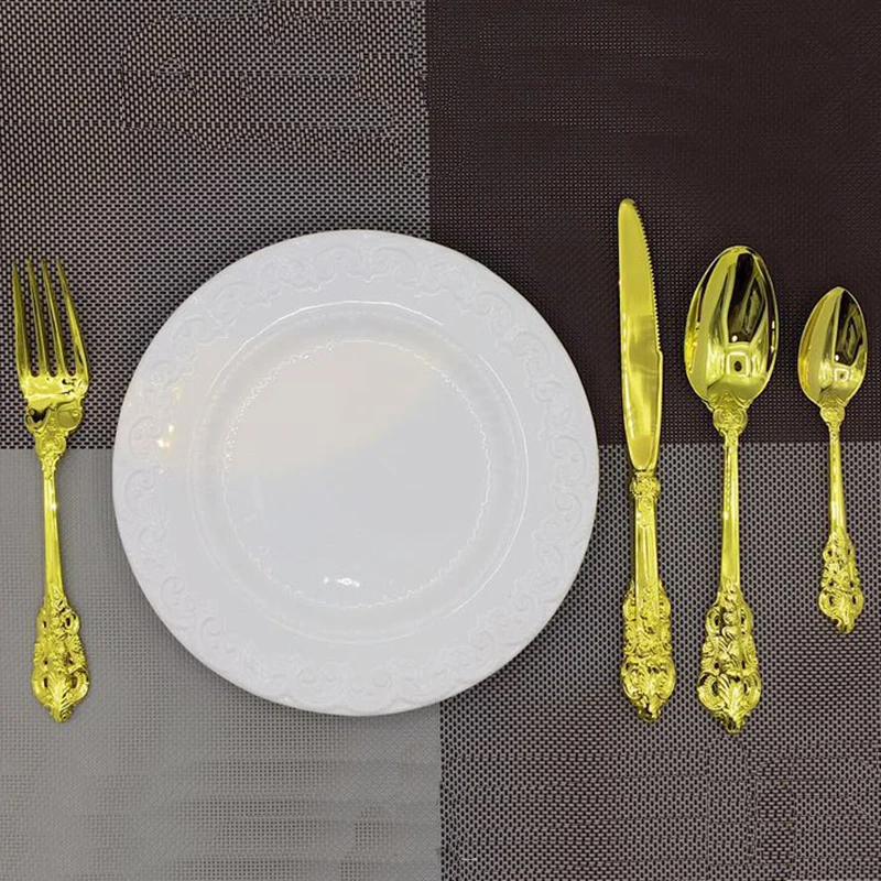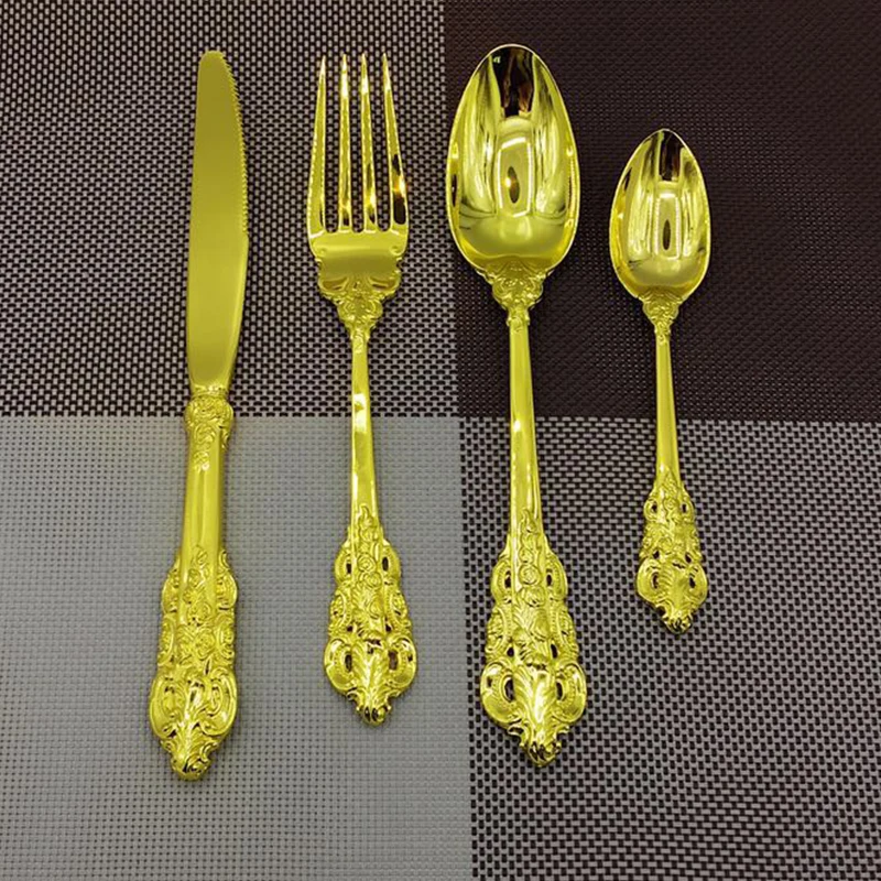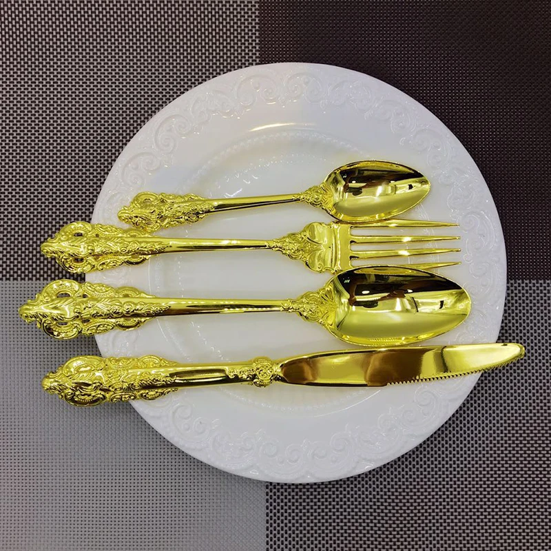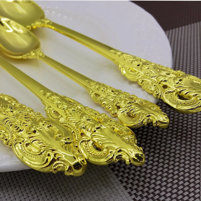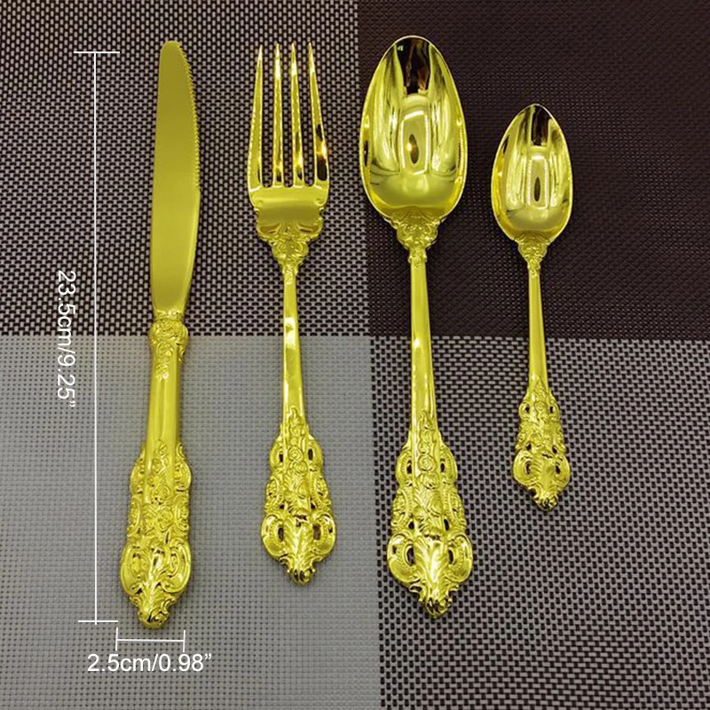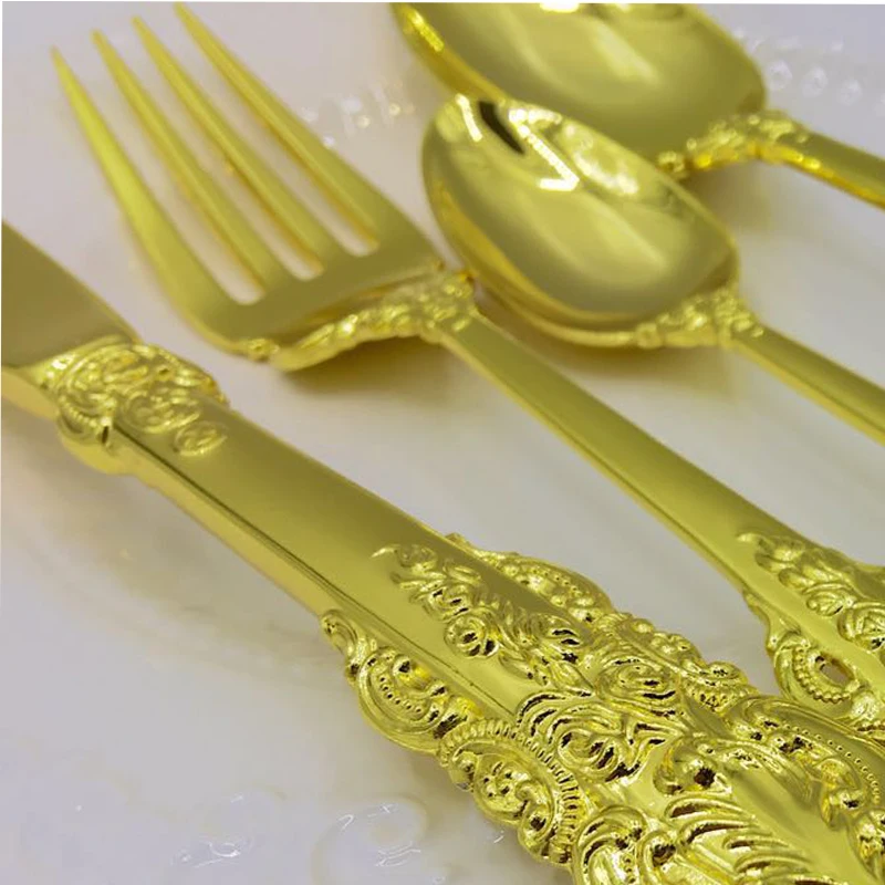 Type:Retro Creative Rose embossed golden spoon fork knife