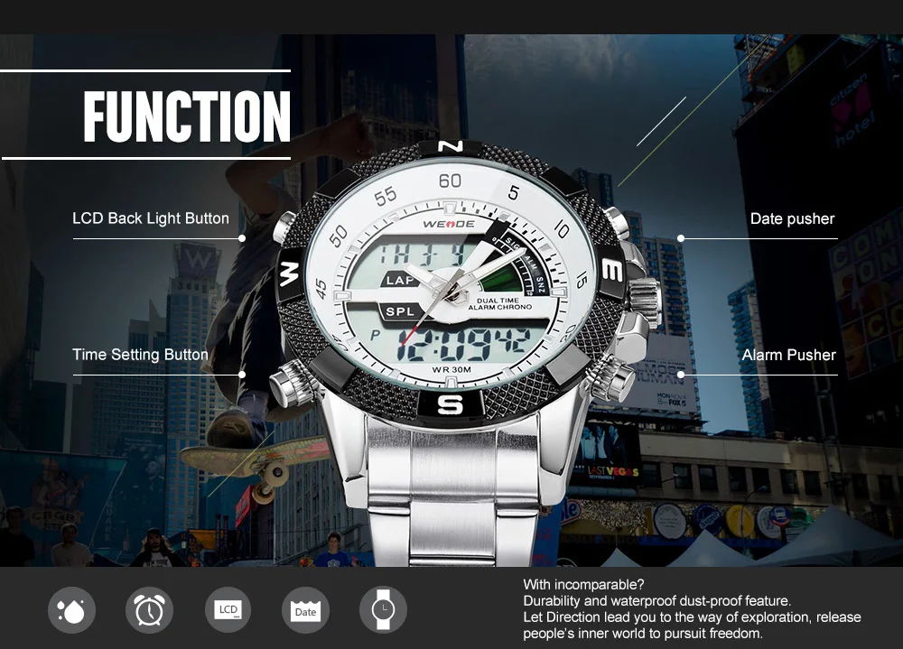 Feature:Back Light,Alarm,Water Resistant,Shock Resistant