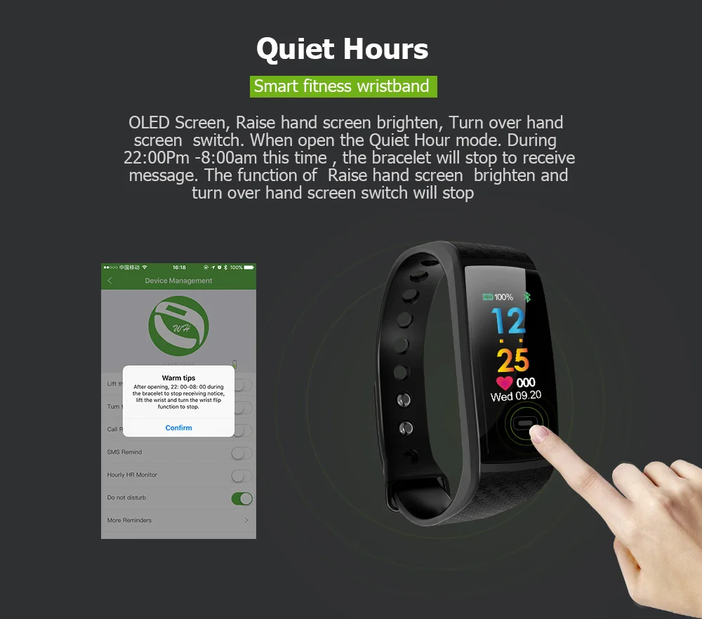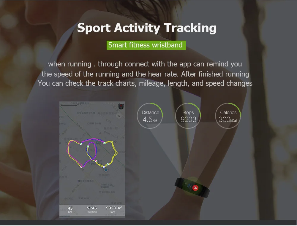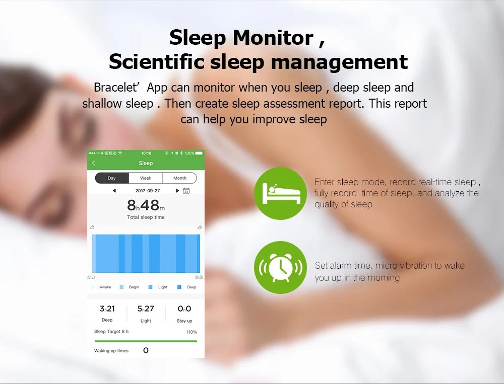Feature:Sleep Tracker,Message Reminder,Water Resistant,Heart Rate Monitor,Alarm