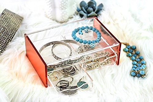 ELEGANT AND STYLISH: The rose gold siding on this high quality, clear acrylic, Flip-Top with 2-draw set, looks fantastic on any desk, counter, dresser or vanity. It goes beautifully with any décor. The rose gold siding reflects natural, halogen or fluorescent light beautifully!