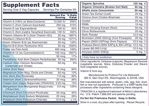 -. Title : Protocol For Life Balance - Ortho Multi Greens - Multivitamin with Green Superfoods (Iron-Free) - 180 Veg Capsules