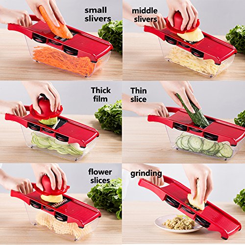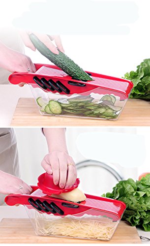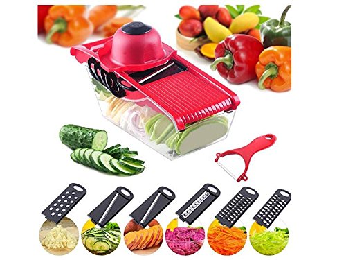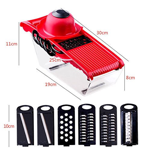 Multifunction Vegetable Slicer,1 container, 6 blades and handpiece, Vegetable Cutter & Julienne Slicer Vegetable Slicer, Fruit and Cheese Cutter & Grater for Slicing,Dicing,Grating,Chopping,Cutting