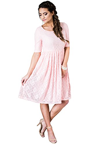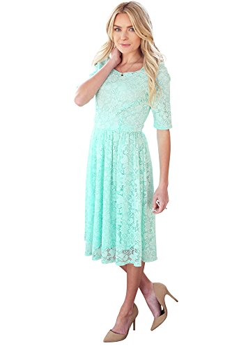 If you liked the Samantha & Haley Lace Dresses, you'll love the NEW Emmy Lace Dress! The a-line silhouette features a fitted top with round neckline and half sleeves and a flowing, pleated skirt. The lace overlay is a perfect match to the background color. It's perfect for any special occasion or event, but it's also styled simply enough to work well for date night or going to church. It would also make a wonderful modest bridesmaid dress! You'll love the Emmy Lace Dress for all occasions!