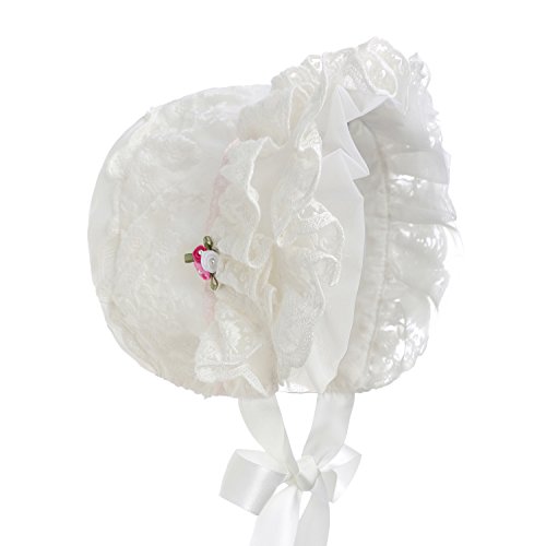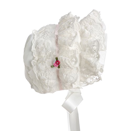 Binding : Apparel Product Description A bonnet is any of a wide variety of headgear for both sexes-most often female-from the Middle Ages to the present.As worn by women and girls,bonnets were hats worn outdoors which were secured by tying under the chin, and often which had some kind of peak or visor,took the place of protection from sun,prevent wind-chapping,hold the hair in place, protect styled hair or keep it tidy,the term has long been popular in both civilian life and in the Royal Regiment . Baby Bonnets are a time old tradition that carries into present day because of their elegance and functionality. They're offered in small to large sizes then tie at the chin with two silk ribbons for a more secure and comfortable fit. Carry the tradition in your family with a bonnet from Hanakimi you can't find anywhere else. For parties and photos, choose from baby girl bonnets for the perfect accessory to accent wisps and curls. Lace, netting, beads and bows add just the right touch to these handmade bonnets. XXS/Newborn Fit for 0-3 Months, XS/3M Fit for 3-6 Months, S/6M Fit for 6-12 Months, M/12M Fit for 12-24 Months, L/24M Fit for 24-36 Months, XL/36M Fit for 36-48 Months. 0