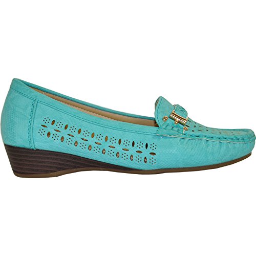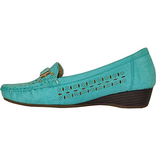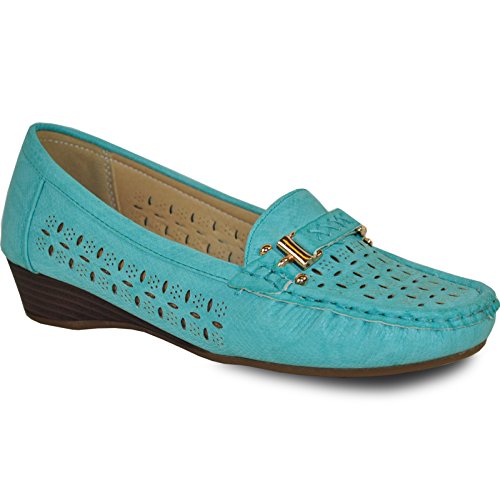 Binding : Apparel Product Description Soft Faux Leather Upper with Metal Bit Detail at Vamp. Easy Slip-on Style Features Laser Carved for Airy Freshness and Stylish. Smooth Lining, and Lightly Padded Footbed Keep Feet Happy and Cozy. Shock Absorbing Low Profile Midsole. Wedge Heel Measures Approx. 1.25". Perfect for Daily Casually Dress Wear. 0