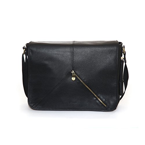 -. Feature : Understated yet striking, this messenger-style bag takes both style and security seriously to impress at work, uptown or on the go. / Slim leather laptop bag accentuated with brushed gold zippers, buttons, and hardware / Messenger-styled flap with zippered quick-access pocket / Hidden under flap zippered storage pocket / Zippered main compartment entry for added security