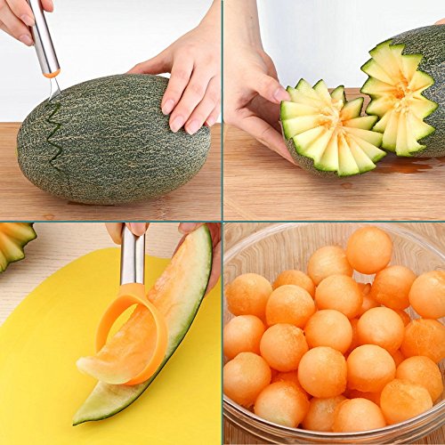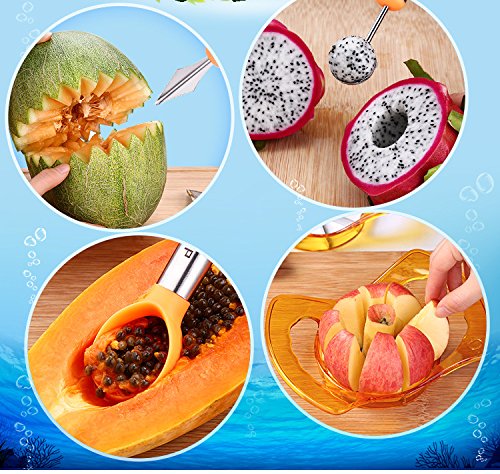 - ✔ FRUIT HAPPY PARTY : Sharp knife teeth, apple slices, melon carving, watermelon digging ball, fruit is very easy to cut! This magic weapon can make you a successful fruit expert