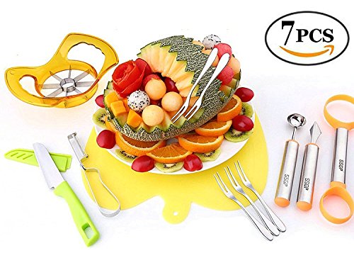 - QST-CAIDU Fruit Cutting Set 304 Stainless Steel Fruit Slicer Kit 7 in 1 for Creative Fruit Plate