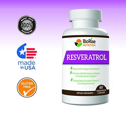- Feature : KEY HEALTH BENEFIT*: Resveratrol is a natural anti-aging antioxidant, which promotes healthy immune system and cardiovascular support. This unique blend includes Vitamin C and the Superfood Acai. *Always consult a doctor before starting any new supplement routine. / WHAT IS RESVERATROL: Resveratrol extract includes all natural Polyphenols, found in the skin of red grapes. Our unique Resveratrol blend provides all of the heart healthy benefits found in red wine, in a super concentrated delivery mechanism. / WHAT IS ACAI: Acai is a dark, purple berry found in the Amazon rainforest, highly valued for its nutritional benefits and powerful antioxidant properties. It has been used for centuries to promote health and overall well being, and has now been incorporated into modern dietary supplement routines to support cardiovascular health and healthy cholesterol levels. When blended with Resveratrol extract, it's a one-two punch that promotes maximum antioxidant and cardiovascular support. / WHY BIORISE NUTRITION: Vegan and vegetarian friendly Resveratrol with Acai and Vitamin C, is produced in gluten-free capsules. All BioRise Nutrition supplements are made in the USA, in GMP-certified manufacturing facilities, using only the highest quality ingredients. / HASSLE-FREE MONEY-BACK GUARANTEE: If for any reason you are not 100% satisfied, within 30 days, please return your BioRise Nutrition Resveratrol for a no-questions asked, full refund.