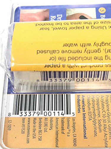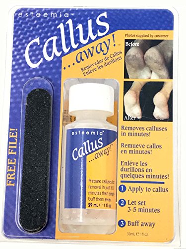 Product Description Description: Removes calluses in minutes Just apply to callus Let set 3-5 minutes. Brand: Esteemia MPN: 833379001145 Type: Corn Callus Treatment Formulation: Liquid Size: 1 Fl Oz 0