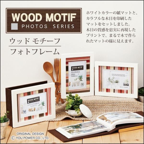 | 仕様 | ●卓上用 ●1mmホワイトペーパーマット・2mmウッドモチーフペーパーマット付 ●フォトサイズ:サービスサイズ(89×127mm)~ポストカードサイズ(105×150mm)2枚 |