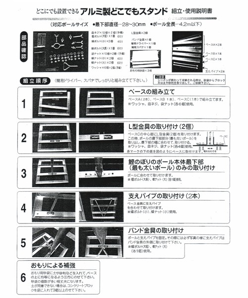 | 鯉のぼり用スカイポール 上下伸縮式。設置が簡単 | 6m鯉用 | 5m鯉用 | 4m鯉用 | 3m鯉用 |