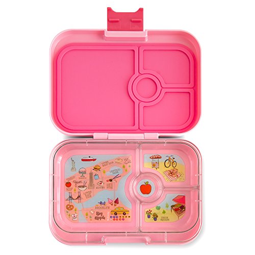 Perfect for kids and adults! 4 compartments (total volume 3 cups plus dip): One 2 cup portion for sandwich/salads, Two 1/2 cup sides, One 1 oz dip/treat well. Illustrated "NYC" Tray.