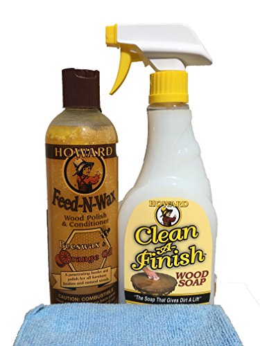 -. Feature : HOWARD CLEAN-A-FINISH WOOD SOAP effectively cleans all wood surfaces using a traditional blend of gentle, yet powerful natural soaps. Clean wood furniture and antiques / COMES WITH MICROFIBER CLEANING CLOTH Clean-A-Finish easily removes dirt and wax build-up on furniture, antiques, cabinets, and more. Safe to use on painted surfaces, plastics, upholstery, and vinyl / Howard Feed-N-Wax Wood Polish and Conditioner for Wood / Use this protective beeswax on finished and unfinished wood to maintain the deep-grained life of the wood. Use our wood wax as a wood restorer and a restorative wood polish, even for antique trunk restoration