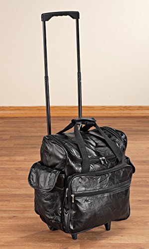 -. Brand : Miles Kimball -. ClothingSize : One Size Fits All -. Department : girls -. EAN : 0617724297724 -. Feature : Save your back and shoulders from stress and strain as you travel / Telescoping handle and smooth-rolling wheels / 6 compartments / Perfectly sized to airline carry-on regulations / 14 1/2" wide x 18" high x 8" deep overall; -. Label : Miles Kimball -. Manufacturer : Miles Kimball -. MPN : 350404-BC00386973 -. PartNumber : 350404-BC00386973 -. ProductGroup : Shoes -. ProductTypeName : HANDBAG -. Publisher : Miles Kimball -. Size : One Size Fits All -. Studio : Miles Kimball -. Title : Miles Kimball Patch Leather Rolling Bag -. UPC : 617724297724