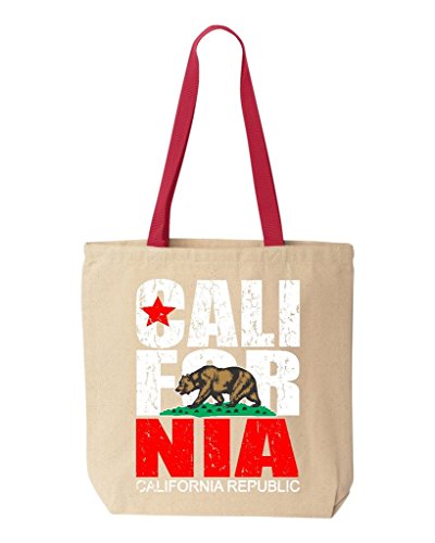 Shop4Ever California Republic Vintage Cotton Canvas Tote State Flag Reusable Shopping Bag 10 oz Natural - Red 1 Pack Colored Handle