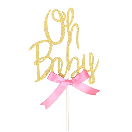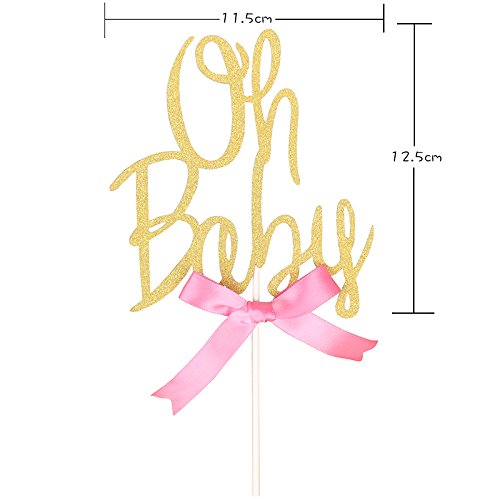Rainlemon Glitter Gold Pink Bowknot Girl Oh Baby Cake Topper Birthday Party Baby Shower Cake Decoration