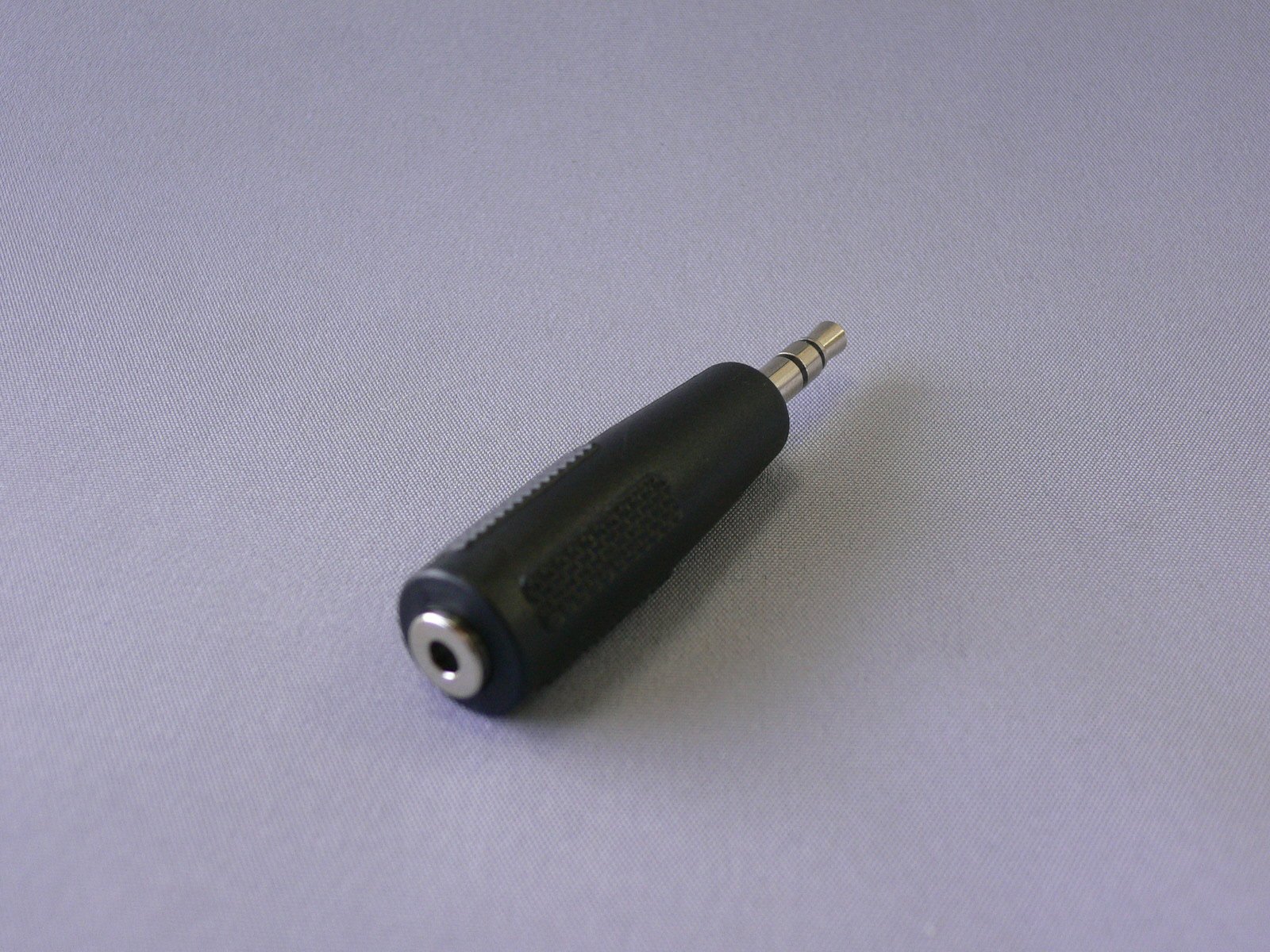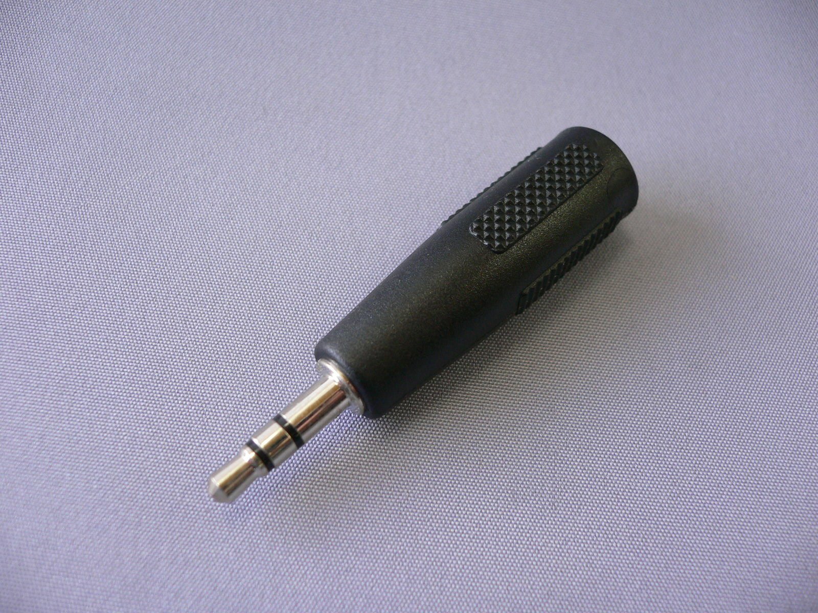 Convert 2.5 mm stereo super mini plug to 3.5 mm stereo mini plug.