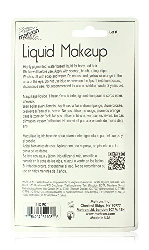 This highly pigmented water-based liquid makeup dries quickly and completely. It is formulated to be smudge-proof and last longer than ordinary liquid makeup, while maintaining a creamier texture. Mehron's Liquid Makeup is the professional's choice for all types of applications. Easily dilutes with Mehron's Mixing Liquid to create a great airbrush makeup.