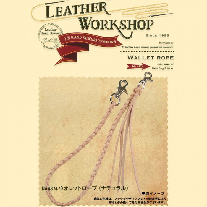 4本編みの基本とロープ留めを習得できる革キットです。 製造国:日本 素材・材質:サドルレザー 商品サイズ:できあがりサイズ:約46cm セット内容:革レース、ナスカン、レース針、ガイドブック ※サプライヤー直送品 ご注文後3~4営業日後の出荷となります【商品名】クラフト社 革キット レザーワークショップ ウォレットロープ ナチュラル 4374-01