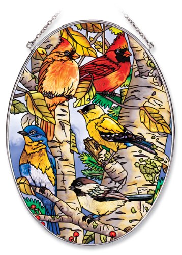 Amia 6433 Large Oval Suncatcher with Songbird Design, 6-1/2-Inch W by 9-Inch L, Hand-painted Glass