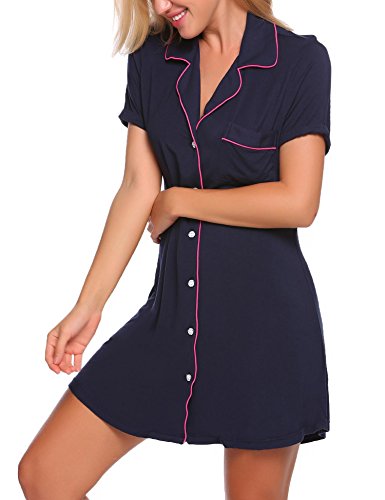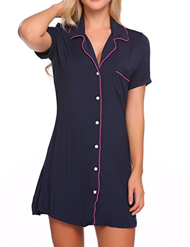 -. Title : Ekouaer Womens Sleepshirt Short Sleeve Pajama Top Boyfriend Sleepwear S-XXL