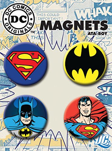 -. Brand : Ata-Boy -. Color : Multicolored -. EAN : 0008215400998 -. Feature : A fridge or locker door is always a great place to show the world what you love! / These fun little magnets feature iconic pop culture graphics that are bright, colorful and cool enough to not be missed / Use on your refrigerator to hold must-see notes or for fun locker decorations / Includes one each of four different Batman and Superman logo and character button magnets; each magnet measures 1.25" in diameter / Officially licensed and made in the USA; each button magnet measures approximately 1.25" in diameter -. Label : Ata-Boy -. Manufacturer : Ata-Boy -. Model : 40099RM4 -. MPN : 40099RM4 -. NumberOfItems : 4 -. PackageQuantity : 1 -. PartNumber : 40099RM4 -. ProductGroup : Kitchen -. ProductTypeName : KITCHEN -. Publisher : Ata-Boy -. Studio : Ata-Boy -. Title : Ata-Boy DC Comics Superman and Batman Round Magnet Set -. UPC : 008215400998