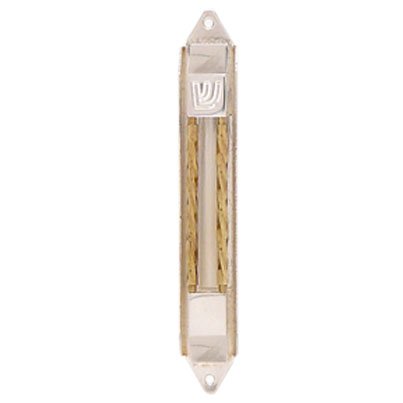 Mezuzah Case - Gold Plated Pillars on Silver Plated Base