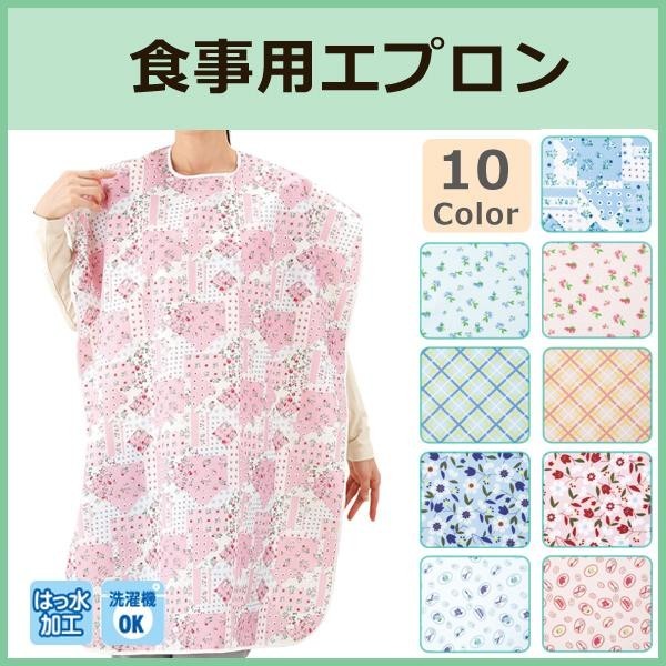 食べこぼしに強い、はっ水加工の食事用エプロンです。色柄10種類のバリエーションで、利用者様毎の使い分けにも便利です。