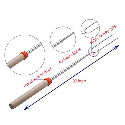 ? Chrome-plated shaft extends to 32" (81cm) ? Wooden handle with thumb roller rotates food to cook evenly ? Wood handle fork is great for camping