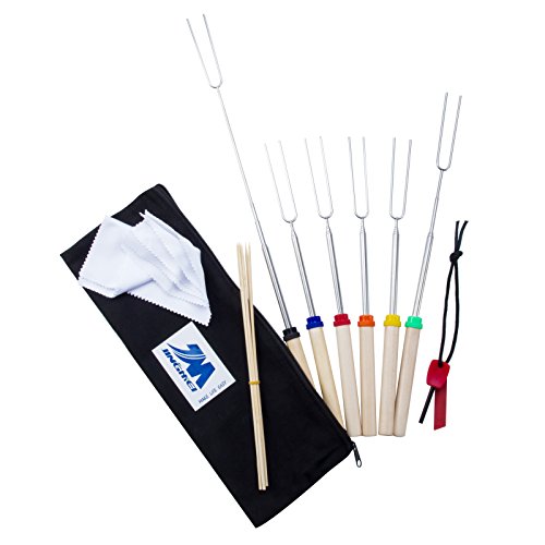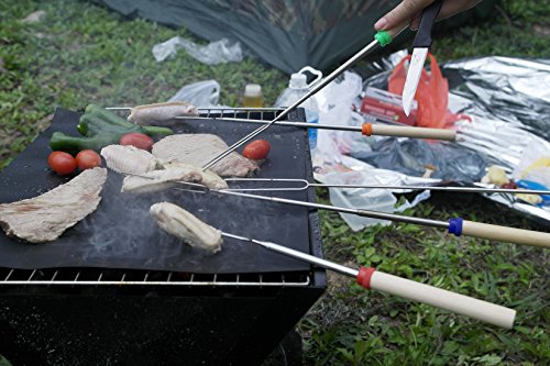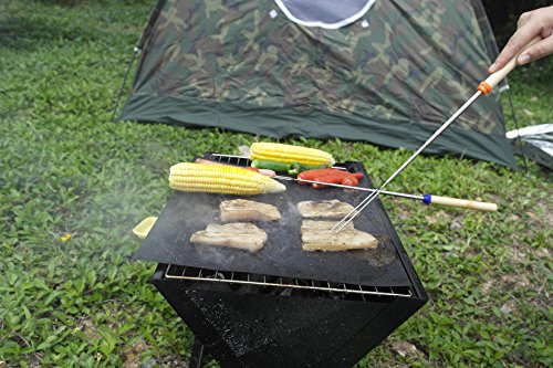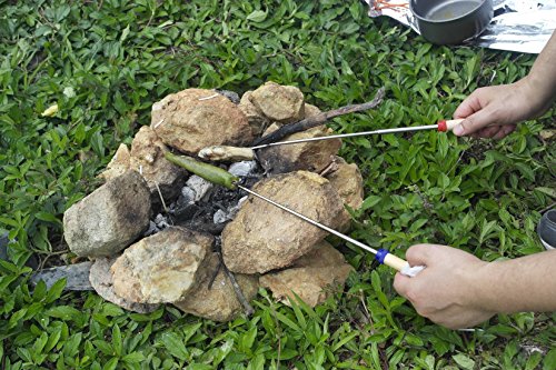 Studio : JINGMEI Publisher : JINGMEI Product Description Cook over an open fire with JINGMEI Telescoping Fork. Designed with a shaft that extends up to 32", this utensil is just what you need for a camping trip or a backyard fire. This camping fork has a wooden handle with a thumb roller that rotates the food, so it cooks evenly. You can use it to cook hot dogs or roast marshmallows.