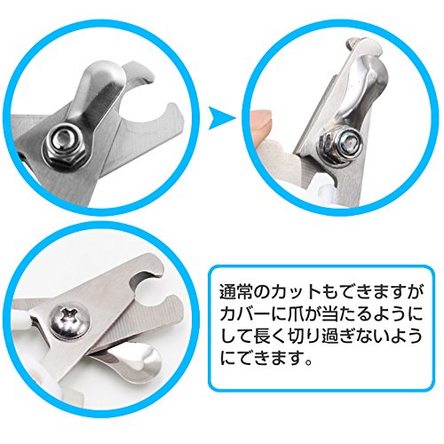 【深爪防止カバー付で爪が割れにくい刃先】 サンダーパウズのペット用爪切りは安全を重視しています。サンダーパウズのペット用爪切りにはペットのつめを切りすぎないための、安全ガードと、安全ガードの収納を簡単にするためのセーフティー・ロックがついており、安全にペットの爪を切ることができます。