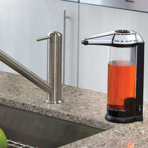 - Chrome and black with clear liquid chamber that stores up to 16.5 ounces of liquid content including soap or hand sanitizer