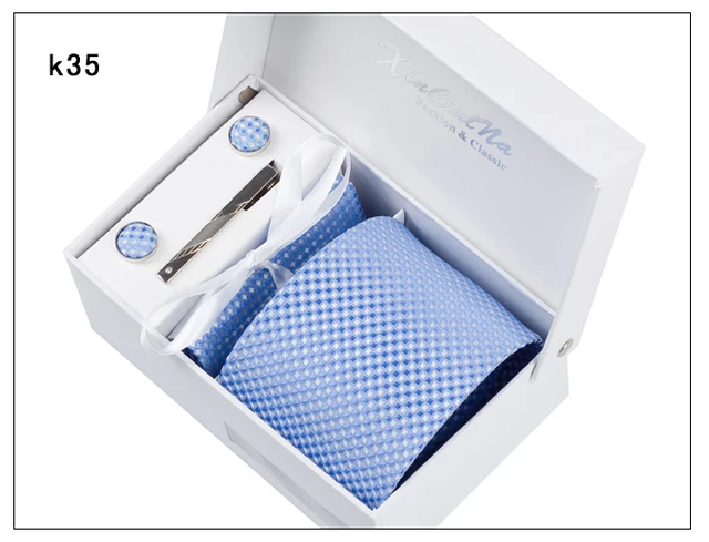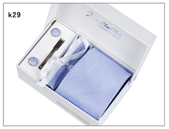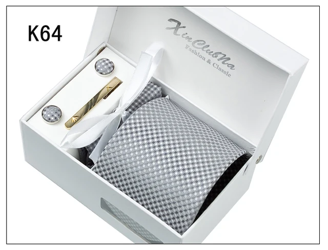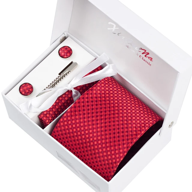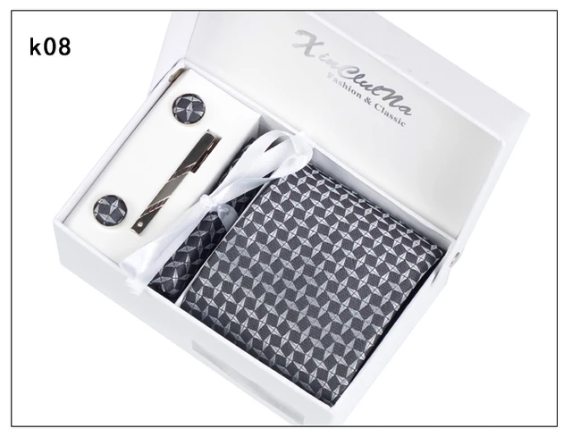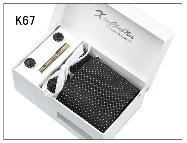 | [해외]2017 새로운 도착 높은 품질 8 센치메터 넓은 넥타이 세트 남성 손수건 커프스 포켓 광장 넥타이 클립 남성 격자 웨딩 Neckt |