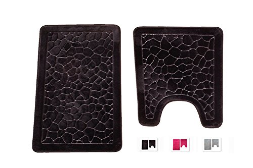 2 Piece Set Memory Foam Bath Mats Non-Slip Bath Rugs Water Absorbent Fast Dry Soft Super Comfortable Stylish Coral Fleece Surface(Black-Cobble)