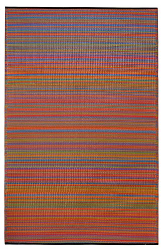 These beautifully crafted rugs are made following the fair trade principles. Fab Rugs add a touch of elegance to your home decor. They are made using premium quality recycled plastic straws which are tightly woven together to offer strength, softness and beauty. Being plastic, moisture will have no effect on the mat and it will not attract mildew. The classic striped pattern of the Cancun rug makes it easy to incorporate into any room, while the array of vibrant hues makes it a best seller. The multicolored straws are carefully blended together to create a unique pattern every time.Feature
