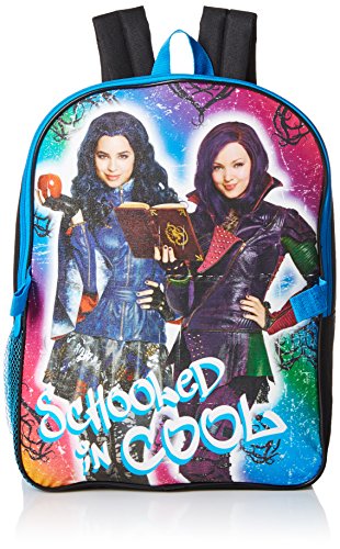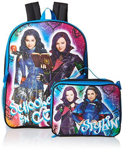 Mal and evie from the descendants are featured on this backpack with lunch. Lunch kit detaches and is insulated to keep food and beverages warm/cold