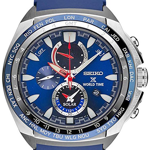 -. Title : New Seiko SSC489 World Time Solar Chronograph Blue Rubber Strap Men's Watch