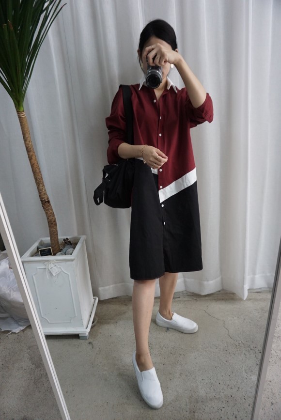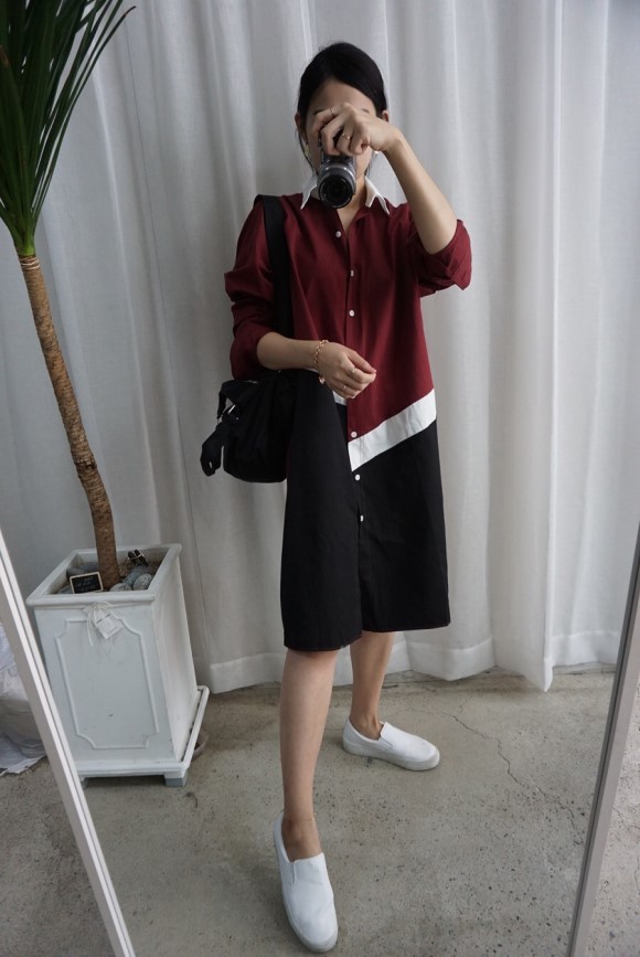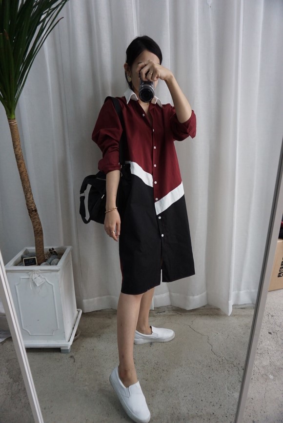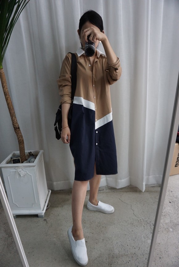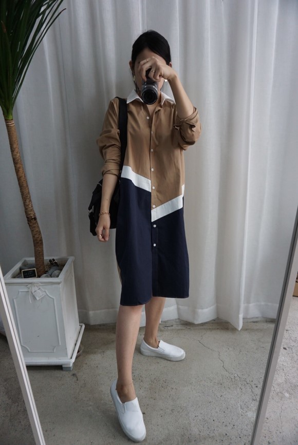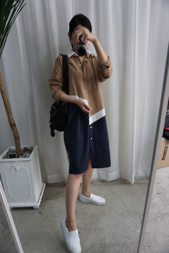 색상 패턴이 너무 깔끔하고 이쁜 셔츠원피스에요