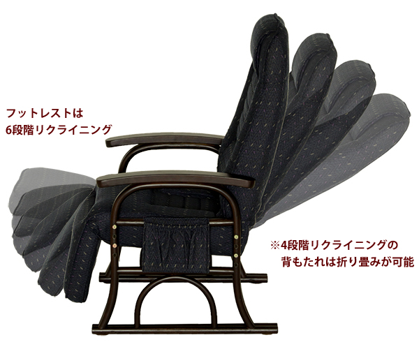 ●フットレストは6段階のギア式リクライニングで角度調節が可能です。