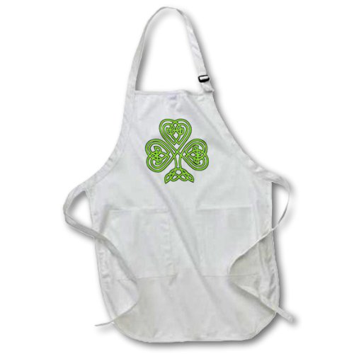 3dRose apr_108308_4 Celtic Shamrock, Irish 22-Inch Width by 30-Inch Length Apron with Pockets, Full Length, Black