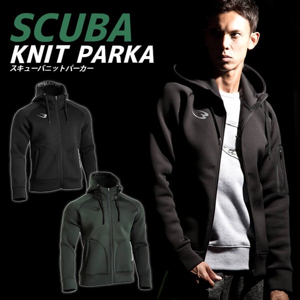 「SCUBA KNIT1(スキューバニット)」とは・・・高圧空気を貯め込んだスキューバタンクの如く、外部からの冷気の侵入を抑止する目的で、素材の間に空気を保つ層を作り、保温性を維持する特殊新素材ニット。◎スキューバニットパーカーの特徴1.高めのネックラインでオリジナルファスナートップ付き2.左袖にもファスナーとパッチポケットが付きます3.フード端・ポケット端(左のみ)のプリントはシャープな印象でかっこいいデザインに仕上げました。