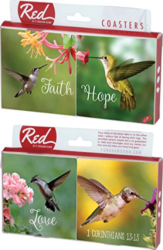 Faith Hope Love Hummingbirds 4 Piece Absorbent Ceramic Coaster Set
