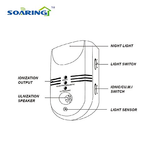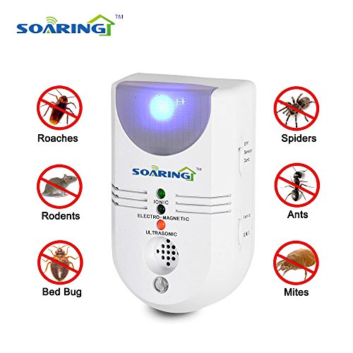 SOARING 4 in 1 Pest Repeller with Ultrasonic Electro-Vibrawave and Ionic Technology Repels Roaches Rodents Spiders Ants Bed Bugs Mites and More with Build-in LED Night Light