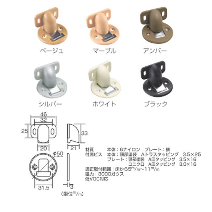 ●マグネットを使用した低価格のドア用戸当りです。豊富なカラーでどこにでもマッチします。