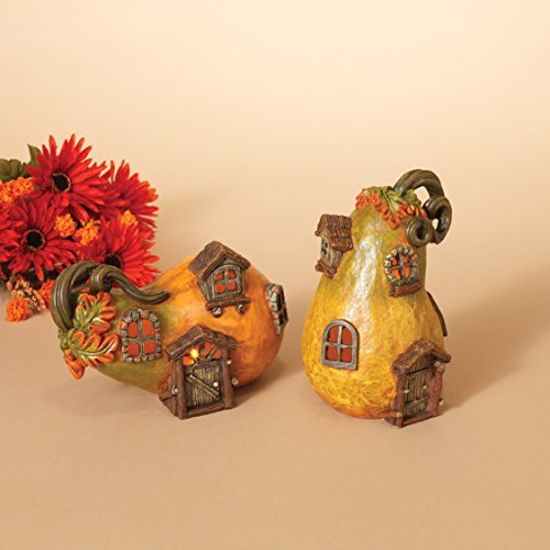 Set of 2 LED Lighted Gourd Gnome Fairy Houses Autumn Tabletop Decorations