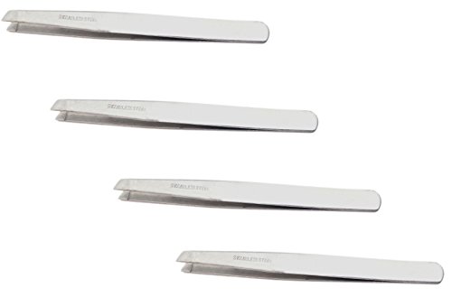 Set of 4 Stainless Steel Slant Tipped Tweezers (Stainless Steel)