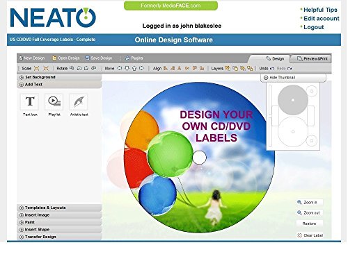FREE DESIGN SOFTWARE WITH ALL LABELS: Get a registration code complimentary with any purchase of labels or inserts. This software will help you design Neato Labels, Cell Phone Skins, Inserts, Beer Labels, and Wine Labels. It comes with templates for Avery, CD, Stomper, and Memorex discs labels, as well. Simple and fun to use, you’ll never use another labeling software again.