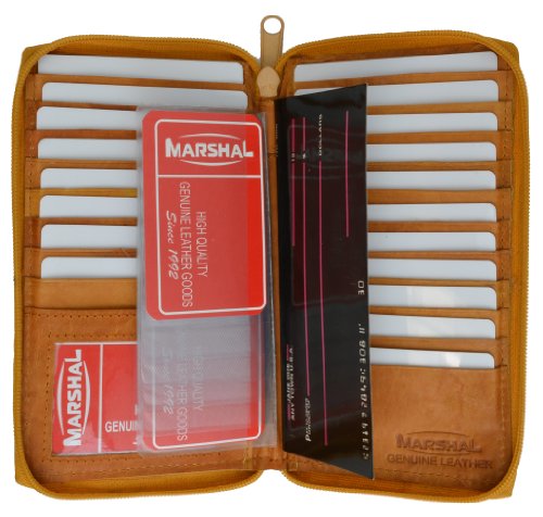 Genuine Leather Zip Around Credit Card Organizer Wallet with Id Window by Marshal